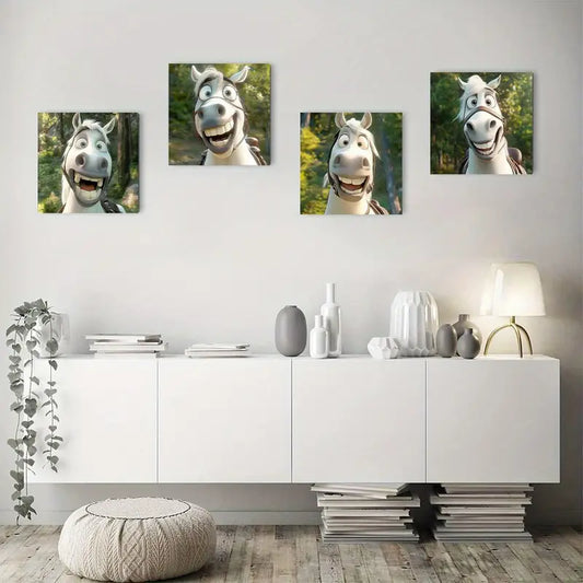 4pcs Angry Horse Picture Wall Art Canvas Framed