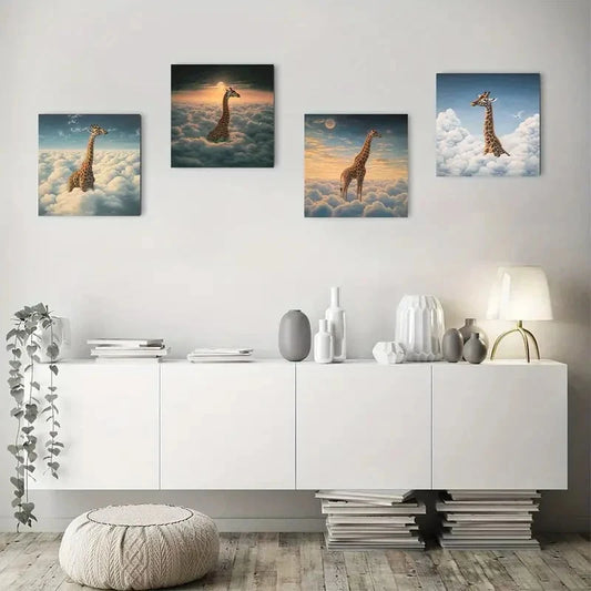 4pcs Giraffe Tree Wall Art Canvas Framed