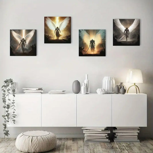 4pcs Fantasy Angel Wing Man Themed Wall Art Canvas Framed