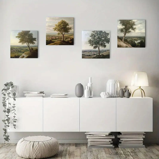 4pcs Country Tree Chimney Picture Wall Art Canvas Framed