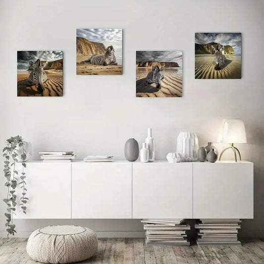 4pcs Decor Desert Zebra Wall Art Canvas Framed