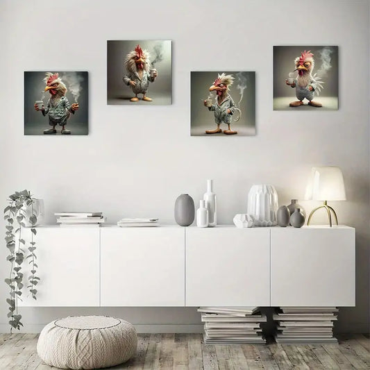 4pcs Bird With Coffee Canvas Wall Art Canvas Framed