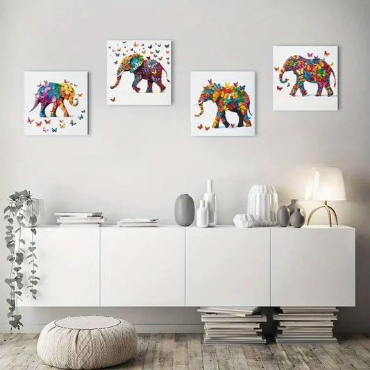 4pcs Elephant & Butterfly Canvas Wall Art Canvas Framed