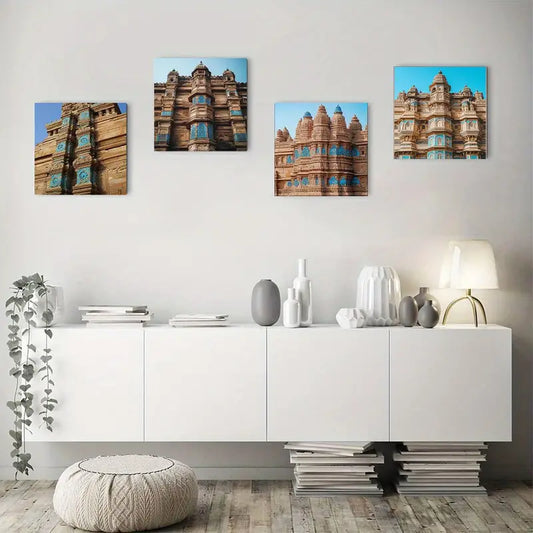 4pcs Blue Sky Ancient Architecture Wall Art Canvas Framed