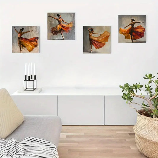 4pcs Dance Picture Quality Texture Wall Art Canvas Framed