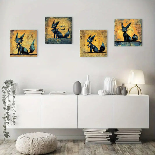 4pcs Vintage Abstract Black Cat Canvas Wall Art Canvas Framed