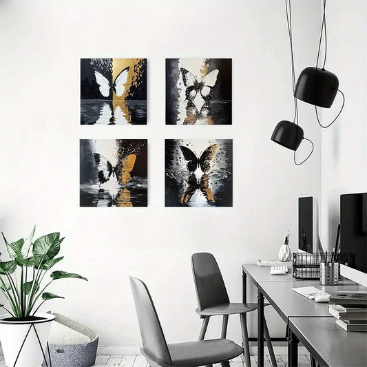 4pcs Black Butterfl Picture Modern Artwork Wall Art Canvas Framed