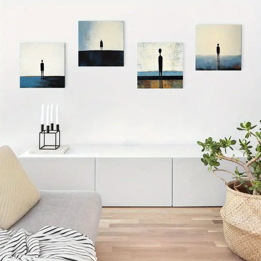 4pcs Minimalist Blue And Black Figures Wall Art Canvas Framed