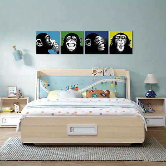 4pcs Humorous Black & White Pop RE Wall Art Canvas Framed