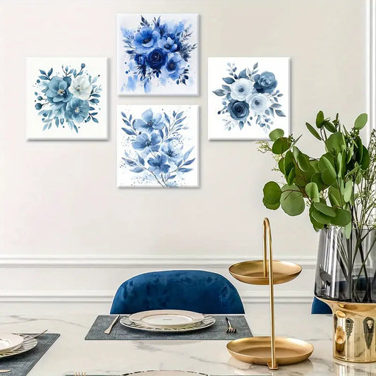 4pcs Blue Floral Botanical Illustration BG Wall Art Canvas Framed