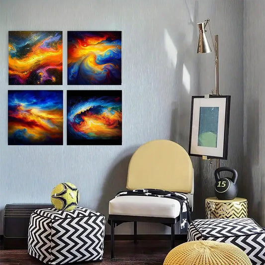 4pcs Vibrant Abstract Living Room, Hallway R Wall Art Canvas Framed
