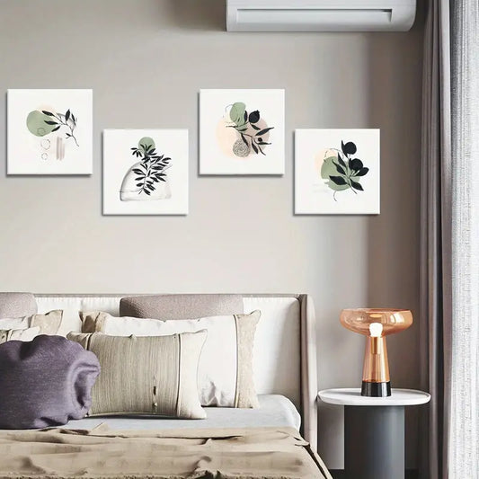 4pcs Minimalist Eucalyptus Fern & Pine Cone Desi Wall Art Canvas Framed