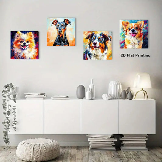 4pcs Cute Dogs Funny Animal Do Wall Art Canvas Framed