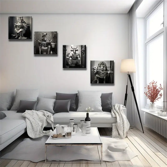 4pcs Funny Bathroom Animals Painting Wall Art Canvas Framed