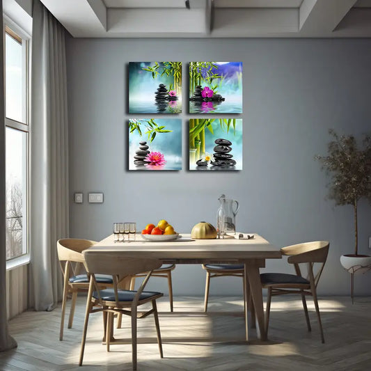 4pcs Bamboo Stones & Blossom Wall Art Canvas Framed