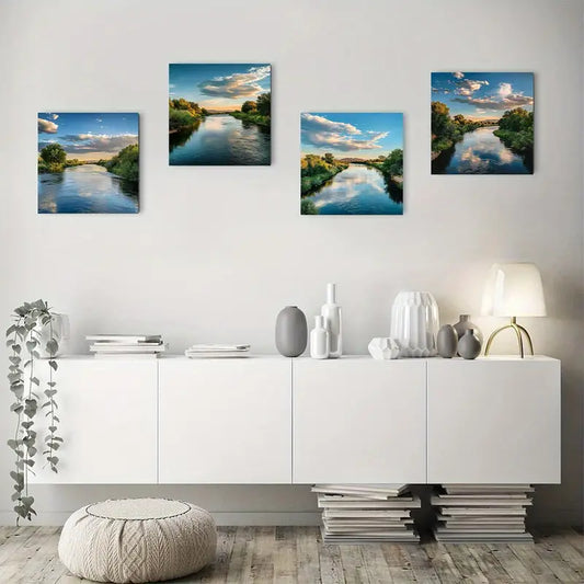 4pcs Vintage Lake Water Waterfall Sunset SW Wall Art Canvas Framed