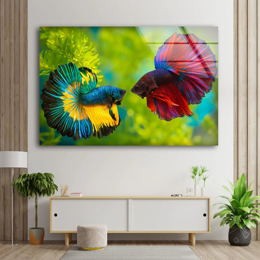 Blue & Maroon Fighter Fish Pair Photograph Acrylic Glass Print Tempered Glass Wall Art 100% Made in Australia Ready to Hang