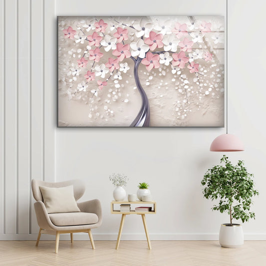 Pink & White Flower Tree 3D Design Acrylic Glass Print Tempered Glass Wall Art 100% Made in Australia Ready to Hang
