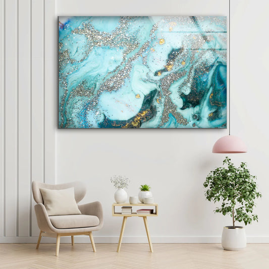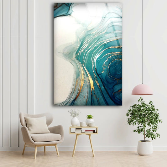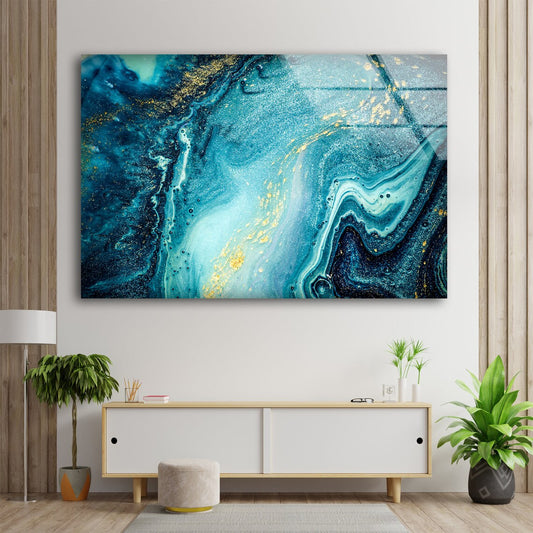 Blue & Gold Abstract Design Acrylic Glass Print Tempered Glass Wall Art 100% Made in Australia Ready to Hang