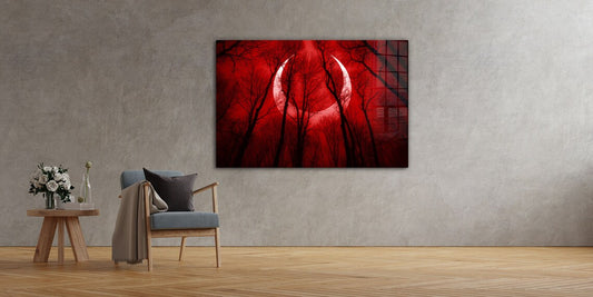 Red Sky Moon with Trees Print Tempered Glass Wall Art 100% Made in Australia Ready to Hang