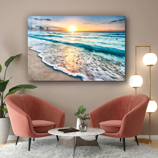 Seashore Sunset Ocean Print Tempered Glass Wall Art 100% Made in Australia Ready to Hang