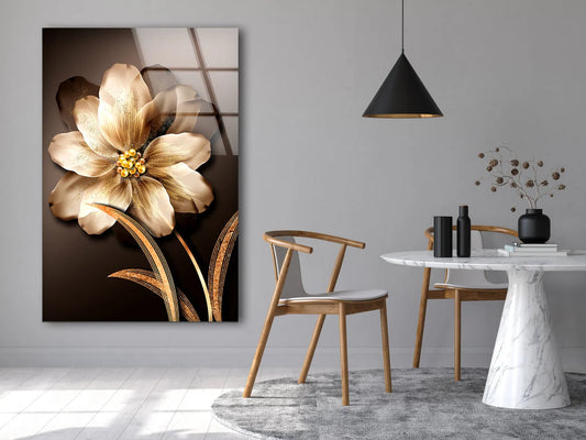 Gold Flower 3D Design Acrylic Glass Print Tempered Glass Wall Art 100% Made in Australia Ready to Hang
