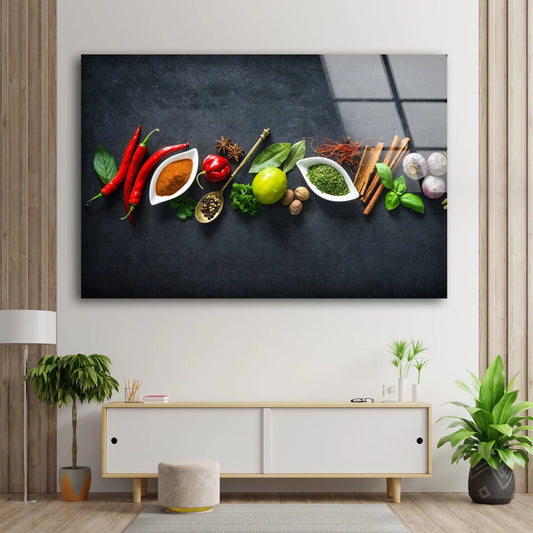 Spices On Black Table Photograph Acrylic Glass Print Tempered Glass Wall Art 100% Made in Australia Ready to Hang