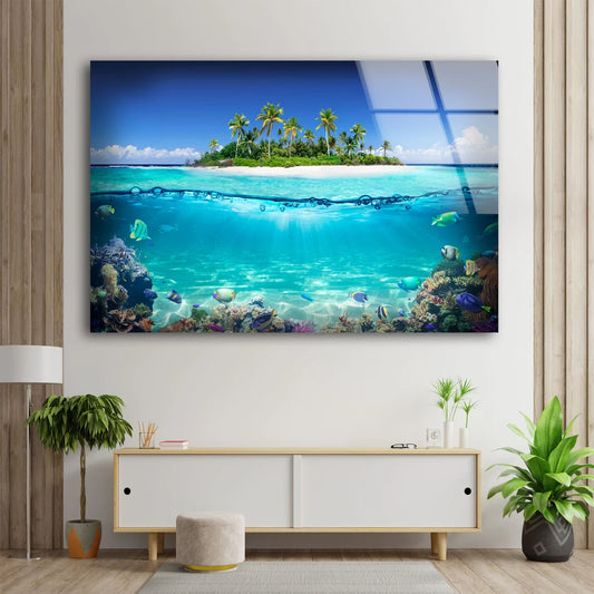 Island & Underwater Sea View Photograph Acrylic Glass Print Tempered Glass Wall Art 100% Made in Australia Ready to Hang