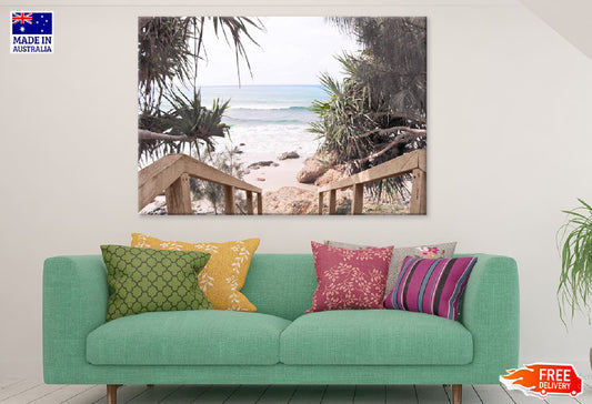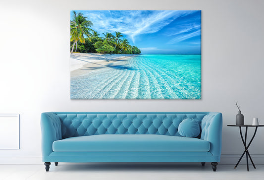 Tropical Sea Waves with Palm Trees Wall Art Decor 100% Australian Made