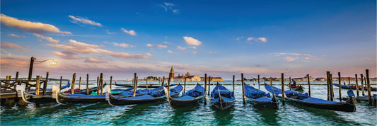 Panoramic Canvas Gondola Boats on Canal with Historic Basilica in Venice, Italy High Quality 100% Australian made wall Canvas Print ready to hang