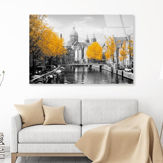 B&W Old Town Canal in Amsterdam Acrylic Glass Print Tempered Glass Wall Art 100% Made in Australia Ready to Hang