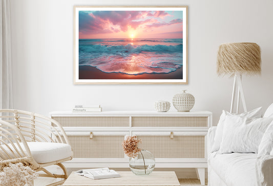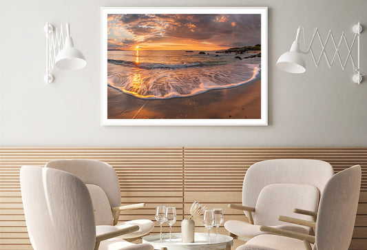 Beach Scene with Waves and a Sunset Home Decor Premium Quality Poster Print Choose Your Sizes