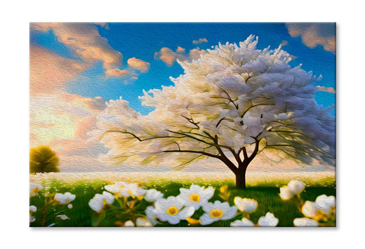 Abstract White Tree & Flower Wall Art Limited Edition High Quality Print
