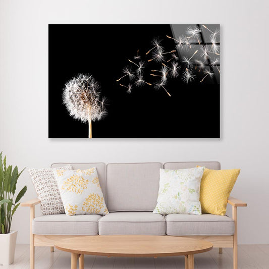Dandelion On Black Background Acrylic Glass Print Tempered Glass Wall Art 100% Made in Australia Ready to Hang