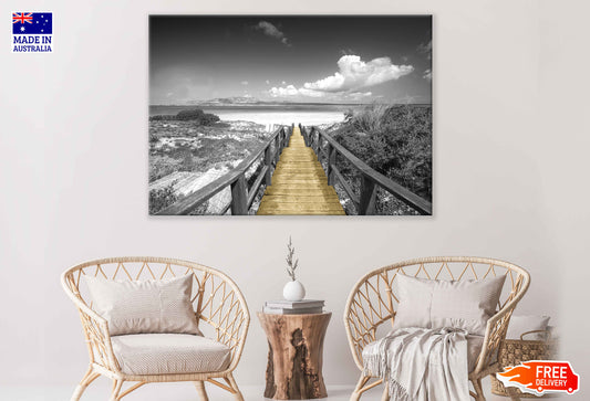 Wooden Path to Beach B&W View Photograph Print 100% Australian Made