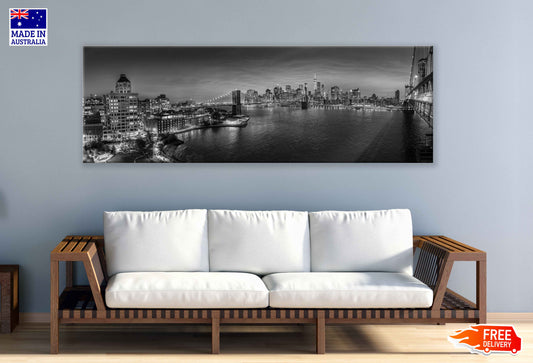 Panoramic Canvas Manhattan City B&W View High Quality 100% Australian Made Wall Canvas Print Ready to Hang