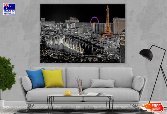 Downtown Las Vegas Night B&W View Photograph Print 100% Australian Made
