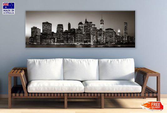 Panoramic Canvas Manhattan City Night B&W View Photograph High Quality 100% Australian Made Wall Canvas Print Ready to Hang