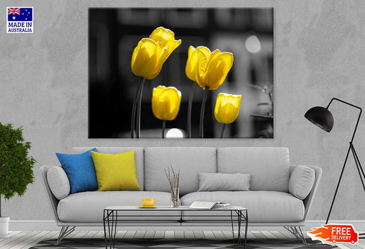Yellow Tulip Flowers B&W View Photograph Print 100% Australian Made