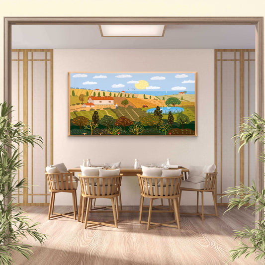 Hand Drawn Farm Landscape Wall Art Canvas Office Home Room Framed 120x60cm