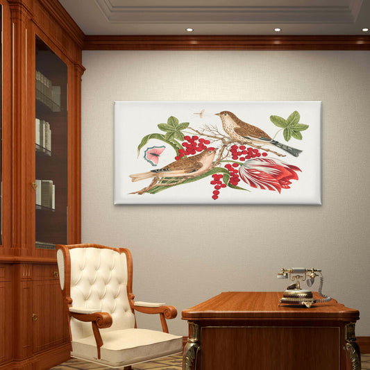 Antique Songbird Floral Study Wall Art Canvas Office Home Room Framed 120x60cm