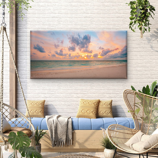 Tropical Beach Sunset Ocean Wall Art Canvas Office Home Room Framed 120x60cm