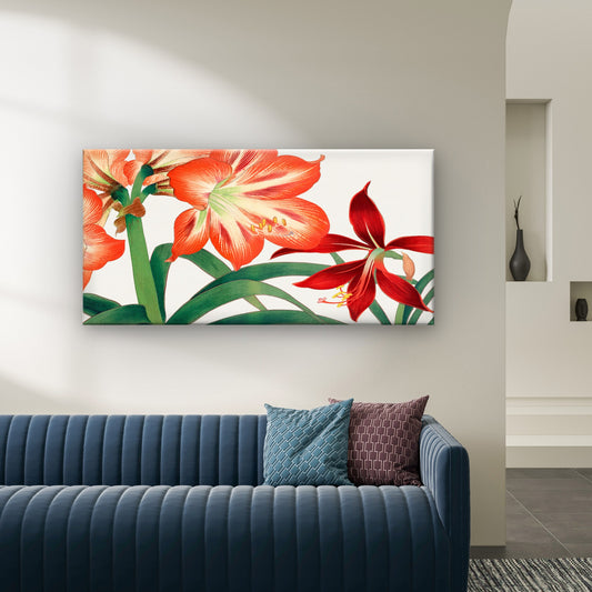 Red Amaryllis Lily Botanical Wall Art Canvas Office Home Room Framed 120x60cm