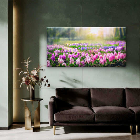 Purple Hyacinth Spring Garden Wall Art Canvas Office Home Room Framed 120x60cm