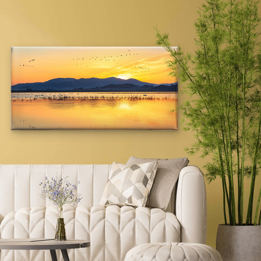 Sunset Lake Birds Flying Horizon Wall Art Canvas Office Home Room Framed 120x60cm