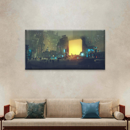 Sci-Fi Cyberpunk City Rain Wall Art Canvas Office Home Room Framed 120x60cm