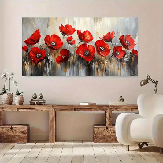 Vibrant Red Poppy wall canvas office home room framed 120x60cm