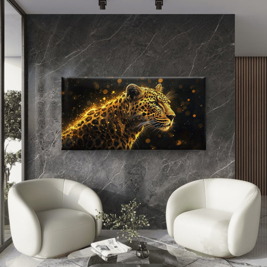 Golden Leopard Illuminated Wall Art Canvas Office Home Room Framed 120x60cm