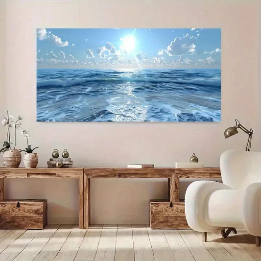 Serene Beach Blue Ocean Wall Art wall canvas office home room framed 120x60cm