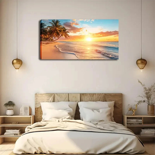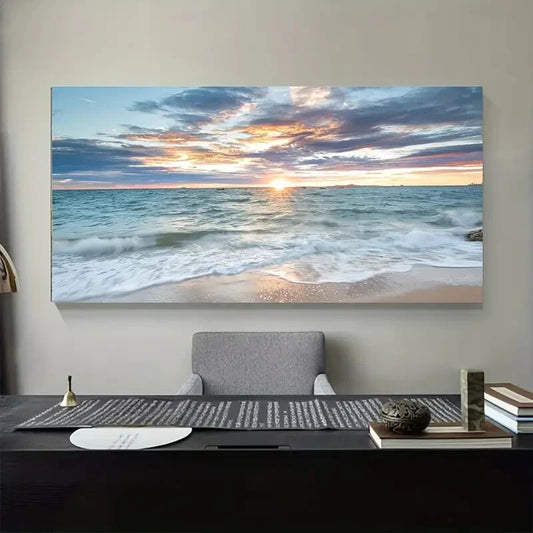 Serene Beach Sunrise Sky Wall Art wall canvas office home room framed 120x60cm